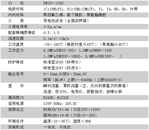 ·測(cè)量管內(nèi)壁光滑、無(wú)阻流件,無(wú)壓損 ·僅要求被測(cè)流體電導(dǎo)率大于 5 μ s/cm ,除了有機(jī)溶液 和蒸餾水,其余液體及液固兩相流體均能滿足測(cè)量條件 ·測(cè)量結(jié)果與液體的壓力、溫度、密度、粘度、電導(dǎo)率等 物理參數(shù)基本無(wú)關(guān),不受環(huán)境影響,所以測(cè)量精度高、 工作穩(wěn)定可靠 ·優(yōu)良的耐腐蝕、耐磨損性能 ·量程比大,尤其適用于在流量變化幅度較大的場(chǎng)合 ·帶金屬襯網(wǎng)的 FEP 內(nèi)襯可用于負(fù)壓管道 ·具有正 / 反雙向流量測(cè)量功能